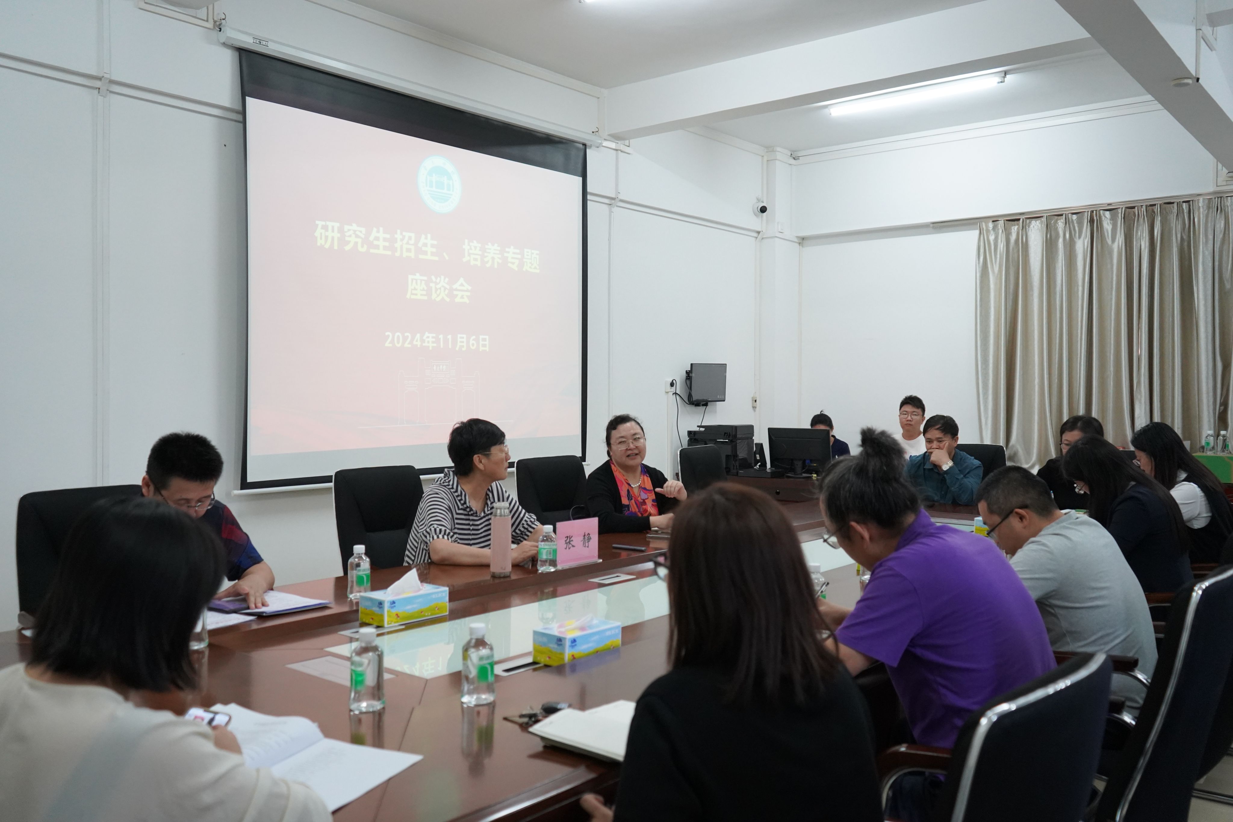座谈会上,各学院的相关负责人积极提问发言,就研究生招生与培养过程中遇到的问题与张静进行了深入的探讨。张静从研究生培养的关键环节、制度建设和优化、以及招生工作策略等多个方面进行了答疑和讲解,分享了她在招生工作中制定的一系列文件和规范,并鼓励各学院结合实际情况进行优化和完善。针对今年新增的六个硕士学位授权点,张教授重点讲解了自命题工作中可能遇到的问题和应对策略。她指出,新增学位点要在学科建设、导师队伍建设和优质生源保障等方面下功夫,为未来的学位核验评估和人才培养打下坚实基础。