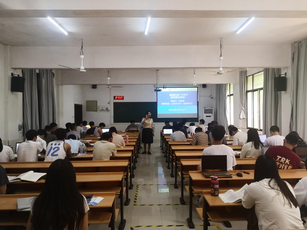 黄伟波博士先以我校的宣传片作引子,以诙谐生动的语言向上述学院的2021级和2022级本科生开展了研究生招生宣讲,重点介绍了我校的发展历程、办学特点与优势、招生专业和招生优惠政策,取得了良好的宣传效果。田华书记与在座学生积极互动,耐心解答了学生的提问。