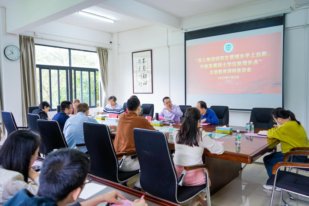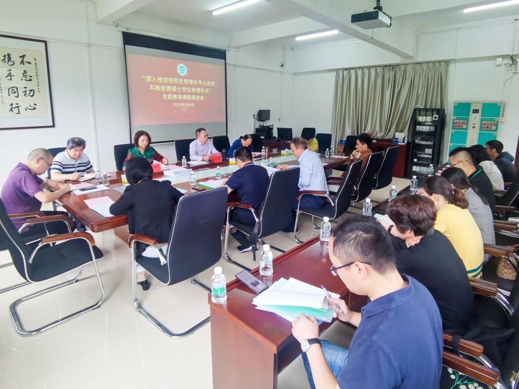根据学校《开展主题教育实施方案》要求,研究生院牵头于5月8日上午在行政楼第四会议室,召开主题教育调研座谈会,会议主题为“深入推进研究生管理水平上台阶,不断发展硕士学位增长点”。研究生院相关人员,美术学院、生命科学学院、环境与化学工程学院、食品与制药工程学院院长及其申硕工作小组核心成员参会。座谈会由研究生院副院长杨琰主持。