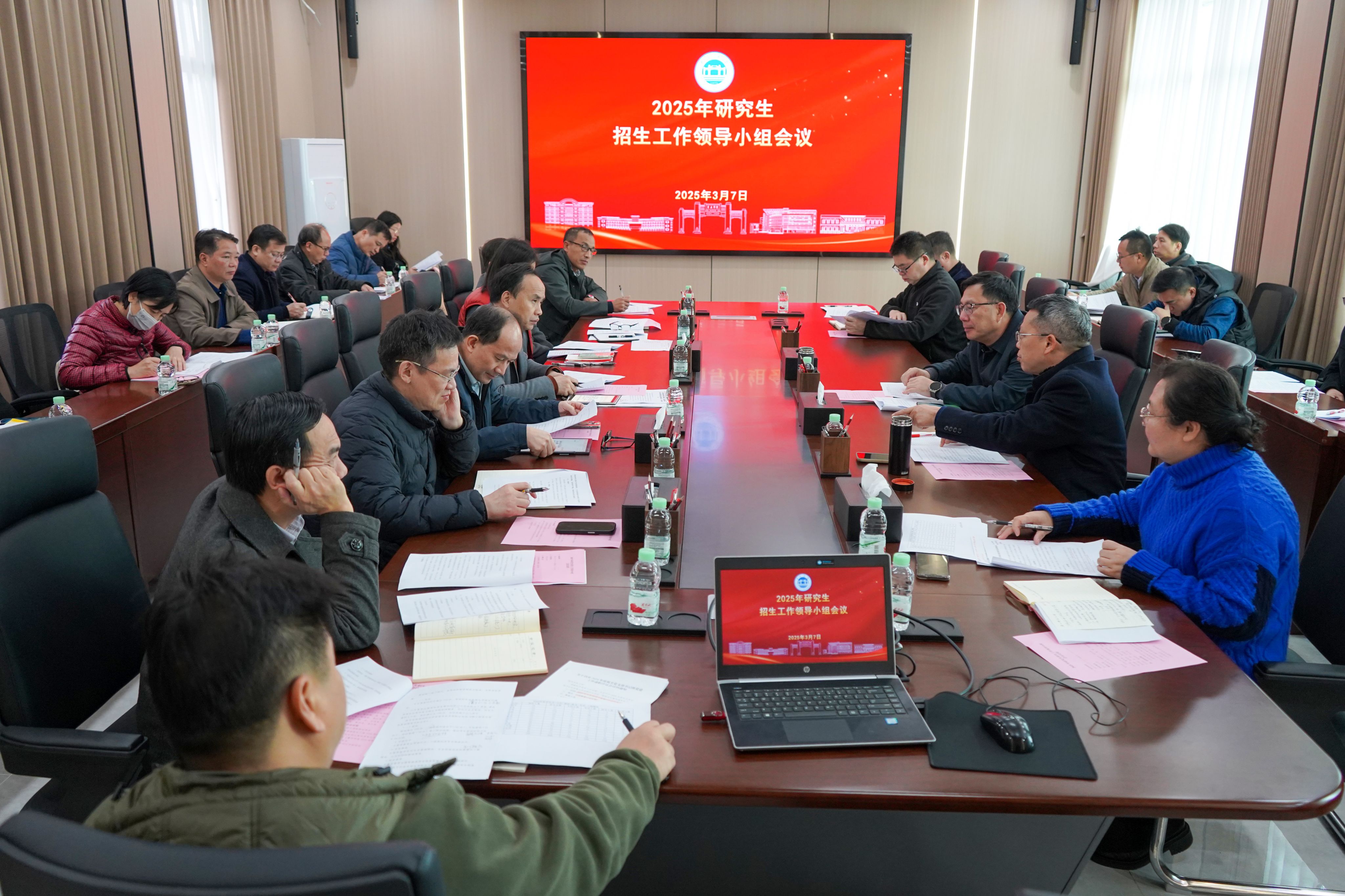 为落实上级有关会议精神及文件要求,做好我校2025年全国硕士研究生招生复试录取工作,3月7日,学校召开2025年研究生招生工作领导小组会议。学校党委书记谢冠华、副校长胡文涛、研究生院院长唐雪莹及各相关部门、学院负责人参加会议。