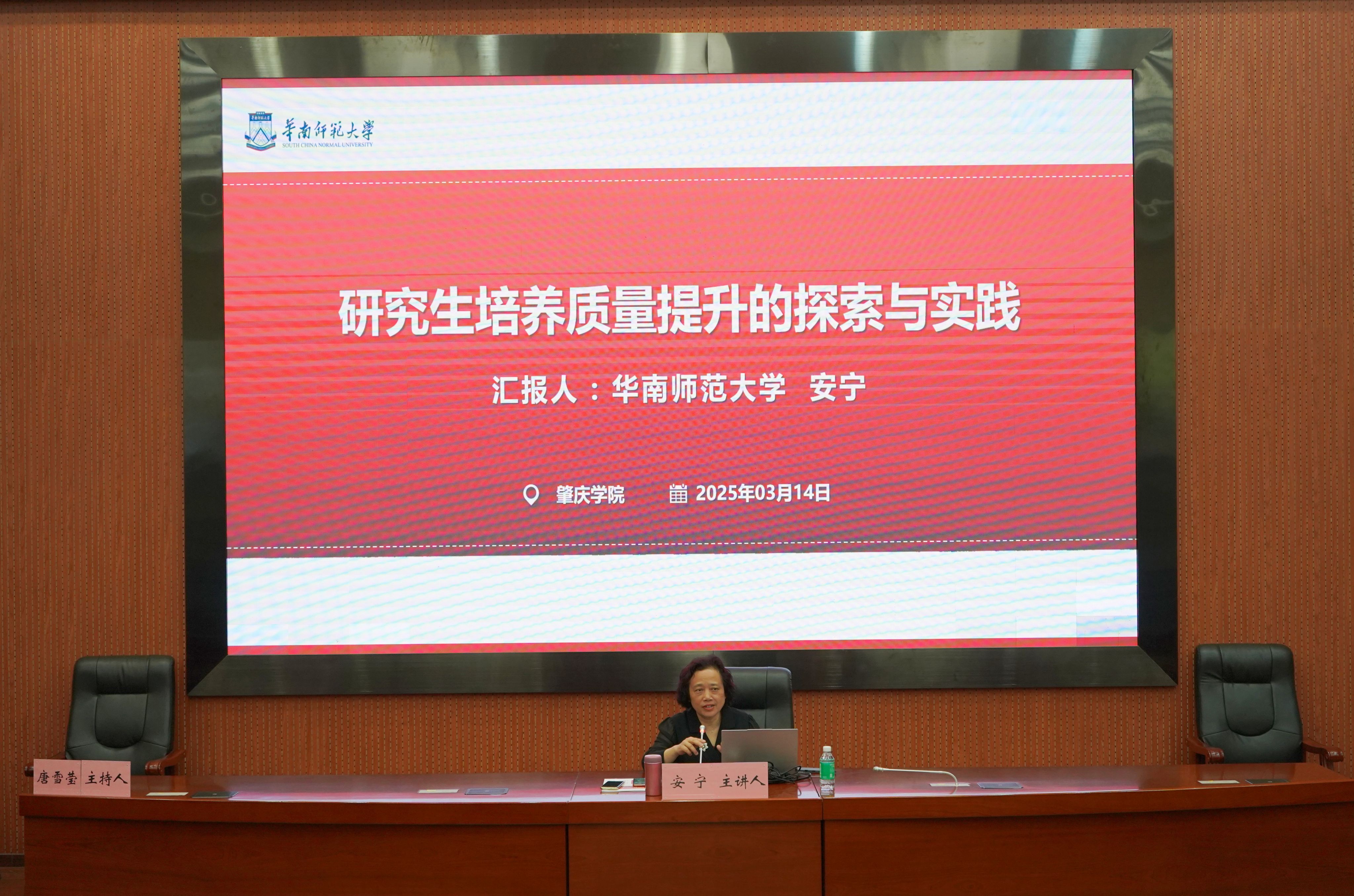 安宁教授以“研究生培养质量提升的探索与实践”为主题,结合华南师范大学研究生教育管理的实际,从“学位质量体系”“质量提升举措”“质量未来战备”三个方面分享了全面提升研究生培养质量的路径。